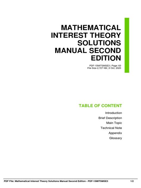 Read Online Mathematical Interest Theory Solutions Manual Free Download Doc By Click Button. Mathematical Interest Theory Solutions Manual Free Download it’s easy to recommend a new book category such as Novel, journal, comic, magazin, ect. You see it and you just know that the designer is also an author and understands the challenges involved with having a good book. You can easy klick for detailing book and you can read it online, even you can download it